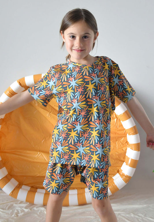 Pigiama due pezzi in bambù - Stelle e fuochi d'artificio - Palloncino blu