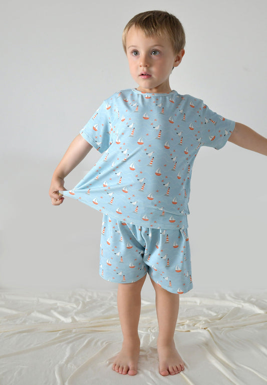 Pigiama due pezzi in bambù - Mare - Palloncino blu