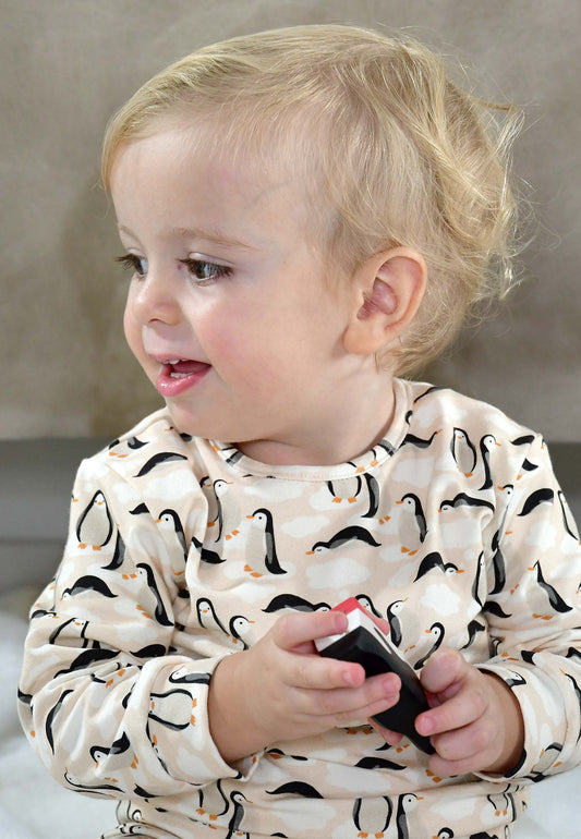 Pigiama due pezzi in bambù - Pinguini - Palloncino blu