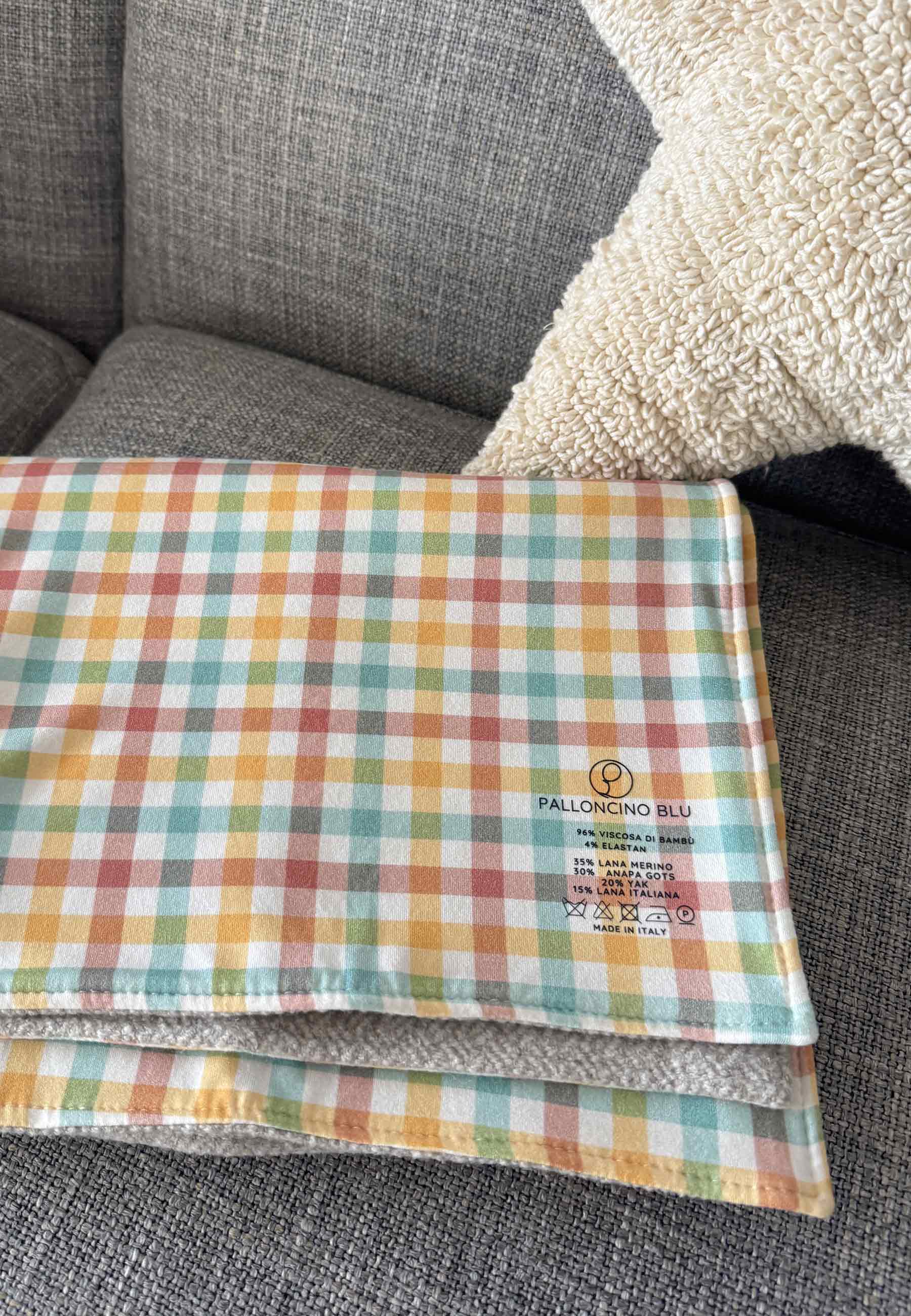 Da un lato, il nostro classico tessuto in bambù, morbido e traspirante con le nostre grafiche uniche, dall'altro un tessuto naturale realizzato unendo filati diversi per dare calore e una piacevole sensazione di benessere, come in un ABBRACCIO.