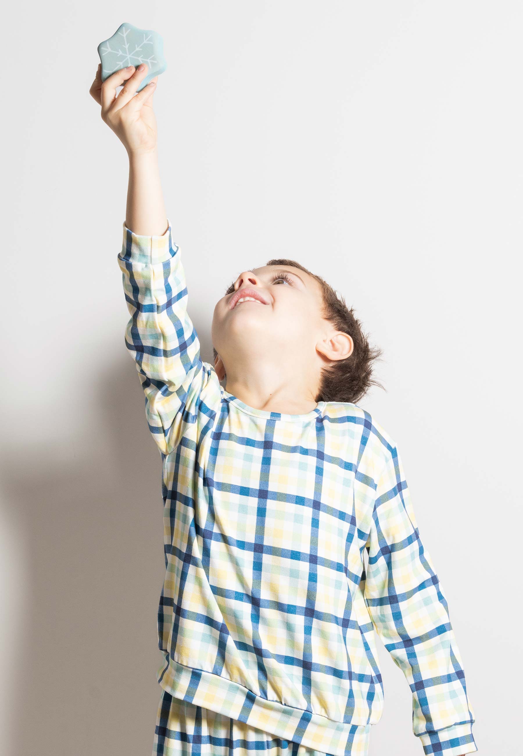 Il perfetto pigiama a due pezzi. Pratico, comodo e morbido. Garantisce la massima libertà di movimento e un adattamento perfetto al corpo del bambino. Un pratico elastico in vita e dei leggeri polsini alle mani e ai piedi danno un comfort assoluto e accompagnano il bambino anche nei sonni più agitati.